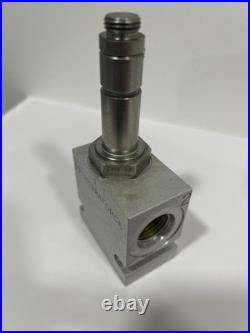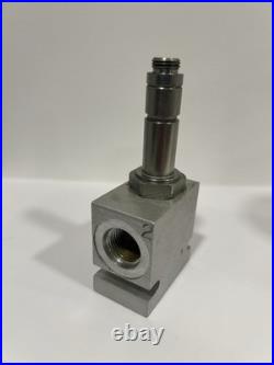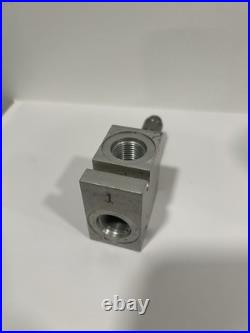 For sale is a genuine HydraForce SV10-20 solenoid-operated, 2-way cartridge valve mounted in a HydraForce 7024280 manifold block. HydraForce SV10-20 valve. HydraForce 7024280 two-port manifold block.